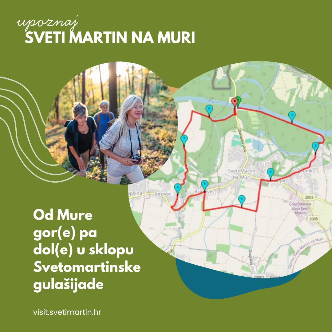 Sama šetnja započinje kod Skelarske kuće u Svetom Martinu na Muri na Svetomartinskoj gulašijadi, kod štanda Sportske udruge FTRUC! i polazi prema Mlinarskoj kući u Žabniku te pješačkim stazama kružno obilazi Sveti Martin na Muri, Brezovec, Jurovec, a završava također na Svetomartinskoj gulašijadi kod štanda sportske udruge FTRUC! gdje će za sve sudionike biti pripremljen ručak.